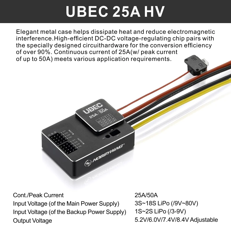 Hobbywing UBEC 25A 3-18S / 10A 2-6S / 5A 2-8S V2 Waterproof Small Regulator Power Module External Switching for RC FPV Drone